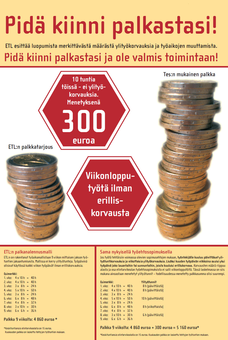– ETL:n työaikamallia on pyritty myymään 2 – 2,5 päivän vuosityöajan lyhennyksellä. Todellisuudessa työtekijät maksaisivat lyhennyksen moninkertaisena palkanmenetyksenä.